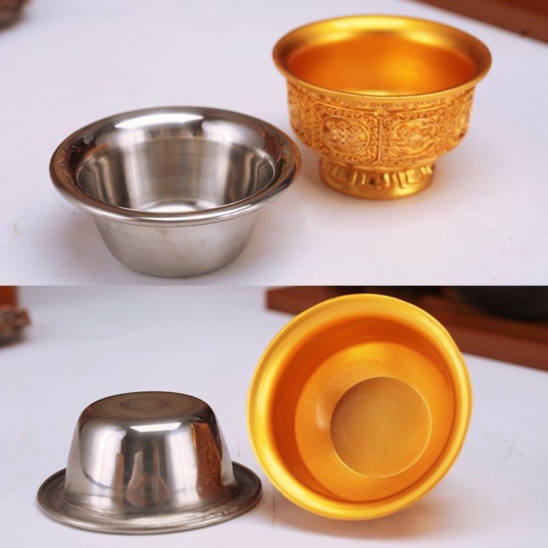 尼泊尔供水杯供酒西藏七供水碗八吉祥八供杯财神圣水杯不锈钢内胆