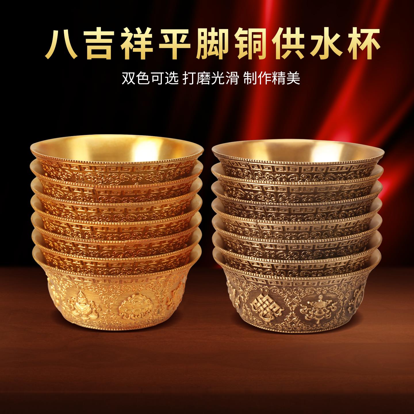 八吉祥供水杯供佛杯黄铜佛前供杯摆件家用矮脚供水碗八供杯圣水杯