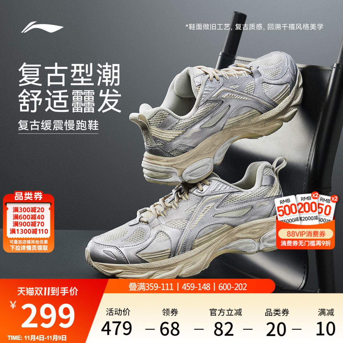 李宁扶摇boom丨䨻缓震跑步鞋情侣秋冬新款复古潮流老爹鞋运动鞋女