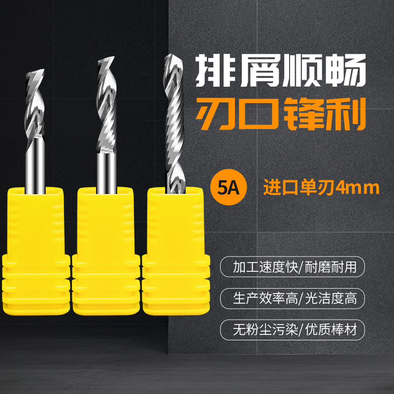 4mm右旋进口单刃铣刀亚克力PVC木工密度板切割刀具雕刻机刀具