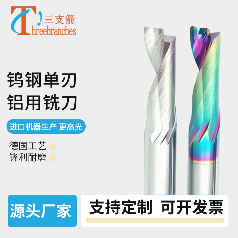 单刃铣刀铝用钨钢七彩涂层螺旋铣刀铝板铝合金广告雕刻机螺旋刀具