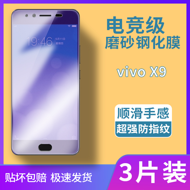 vivox9磨砂膜x9plus钢化膜x9i全屏覆盖x9sL电竞专用膜适用于高清抗蓝光保护贴膜防摔爆玻璃膜防滑超薄手机膜
