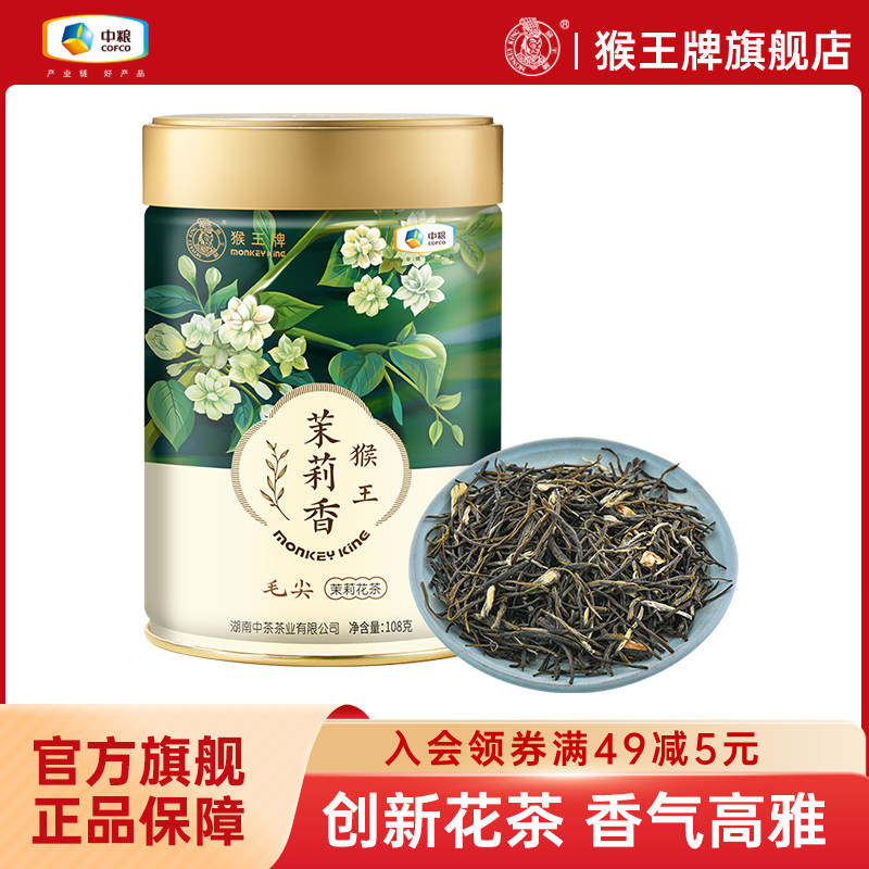 猴王茉莉香毛尖猴王牌茉莉花茶浓香型新茶叶飘雪绿茶108g冷泡
