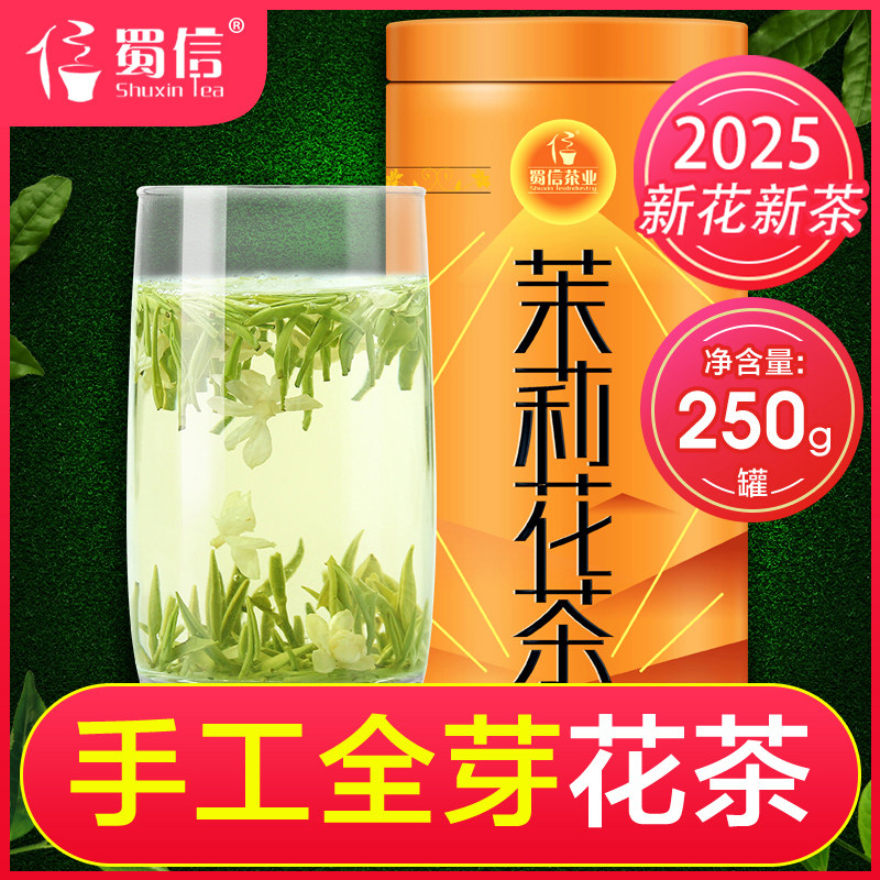 2025年新茶蜀信飘雪茉莉花茶叶浓香型手工甘露茉莉花四川花茶250g