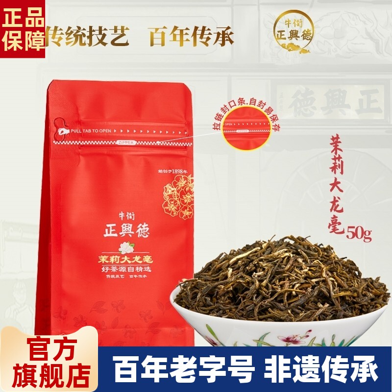 牛街正兴德 新茶茉莉花茶茶叶浓香型小包装茉莉大龙毫袋装50g
