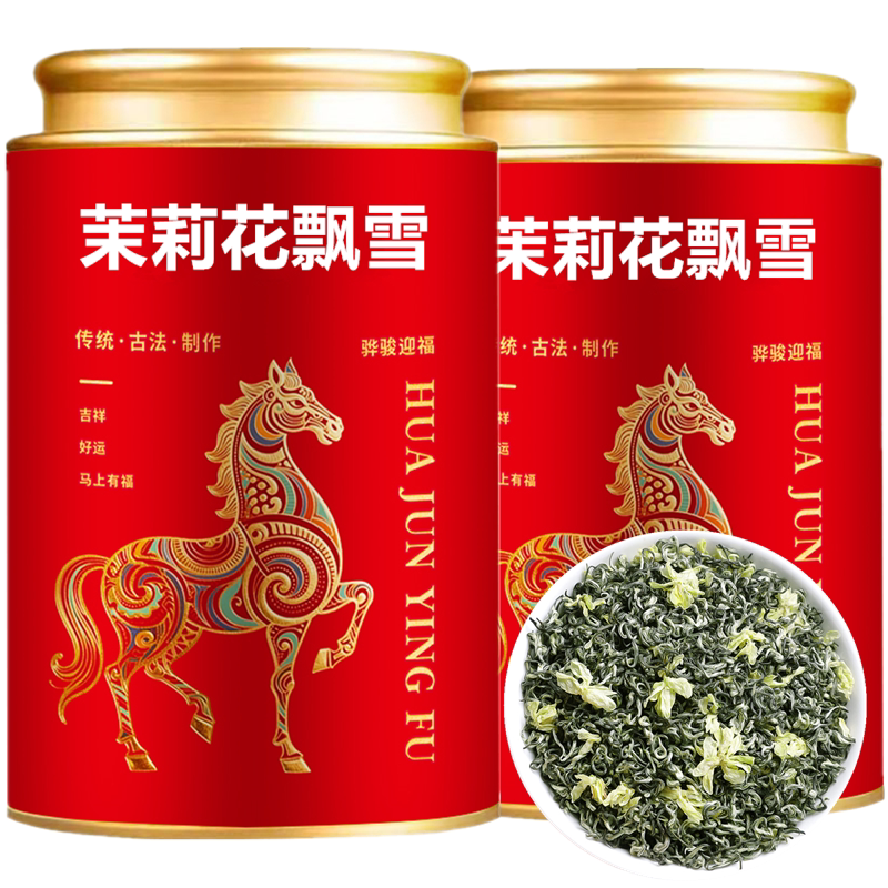 飘香韵 特级茉莉花茶雪芽浓香型 飘雪绿茶官方旗舰店新茶叶自己喝