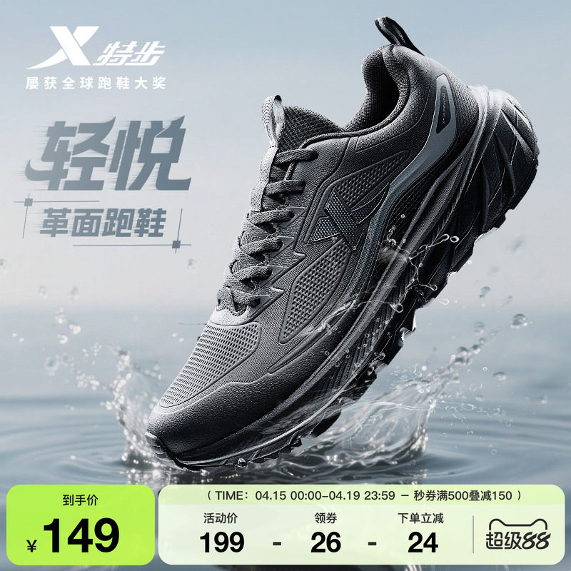 特步跑步鞋保暖男鞋夏季减震轻便跑鞋加绒保暖皮面棉鞋舒适运动鞋