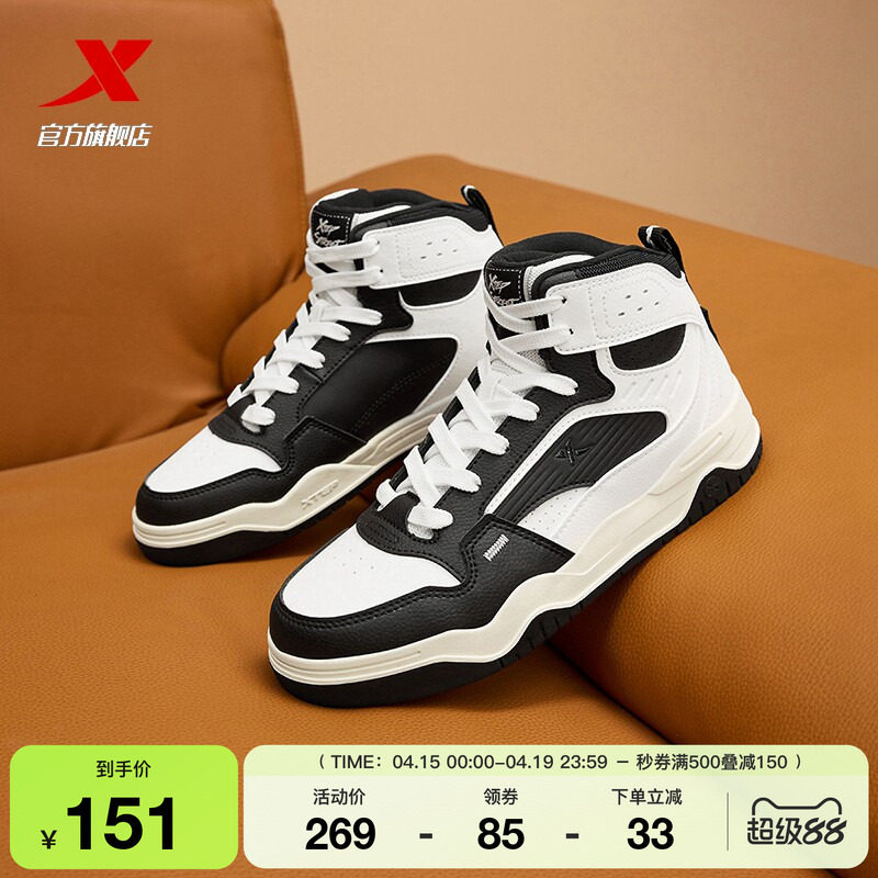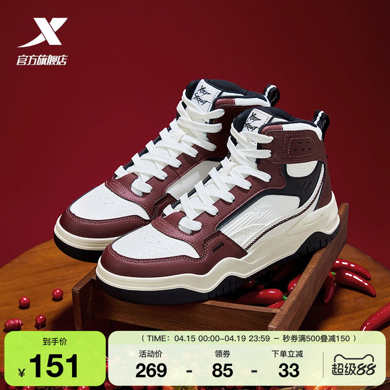特步高帮板鞋男鞋2026夏季新款增高休闲鞋保暖加绒棉鞋运动鞋子