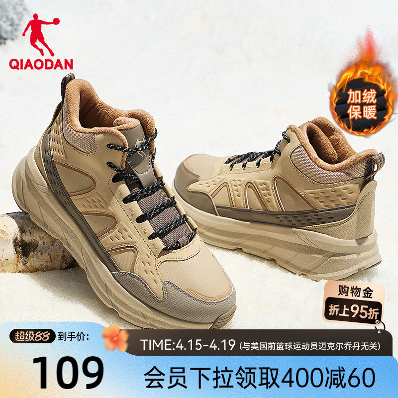乔丹加绒男鞋户外防水雪地靴春季高帮新款保暖棉鞋徒步防滑运动鞋