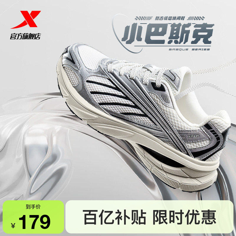 特步小巴斯克丨加绒跑步鞋男鞋保暖棉鞋舒适轻便女鞋复古运动鞋子