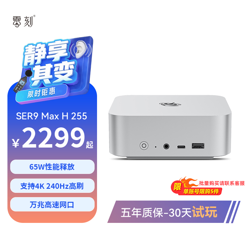 零刻SER9Max H 255高性能AMD锐龙7 游戏办公超静音迷你主机电脑