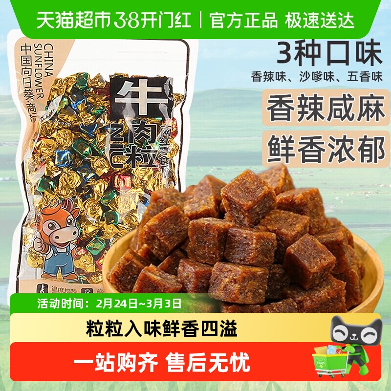 牛肉粒五香香辣沙爹味牛肉干网红年货新鲜特产解馋休闲小零食袋装