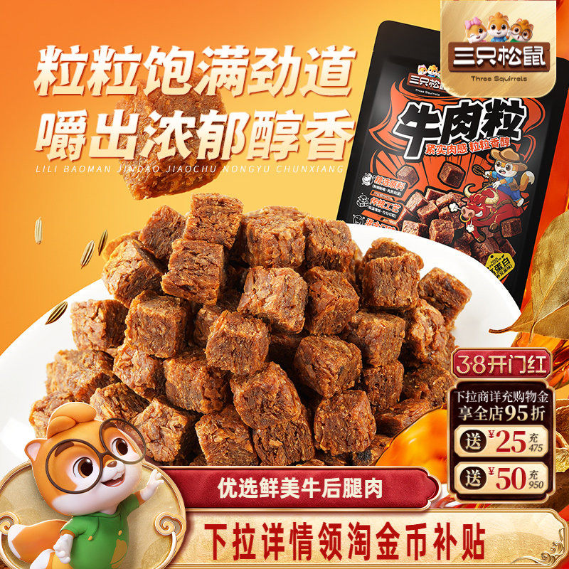 三只松鼠_牛肉粒香辣高蛋白牛肉粒糖果小包装零食小吃牛肉干解馋
