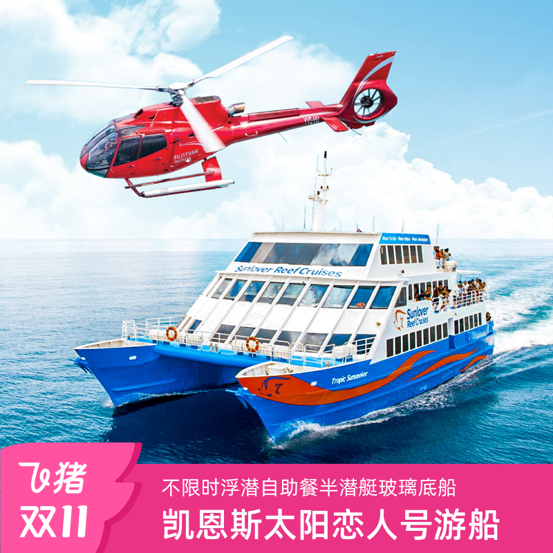 懒猫旅行 澳洲旅游凯恩斯银梭号游船阿金考特大堡礁直升机一日游
