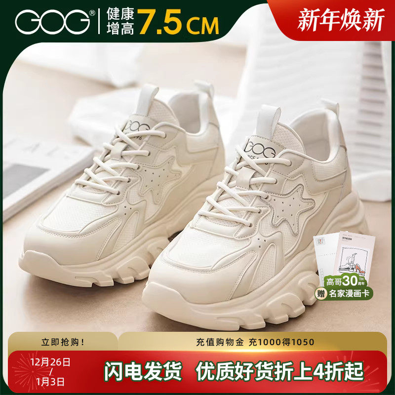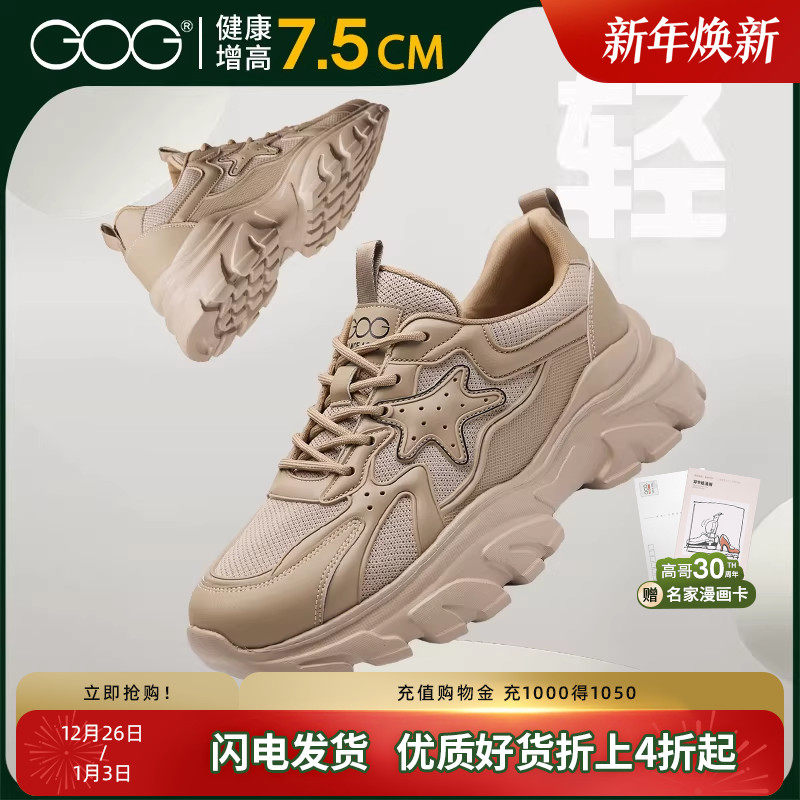 高哥内增高鞋8cm秋冬新款休闲男鞋厚底复古老爹鞋舒适轻质运动鞋