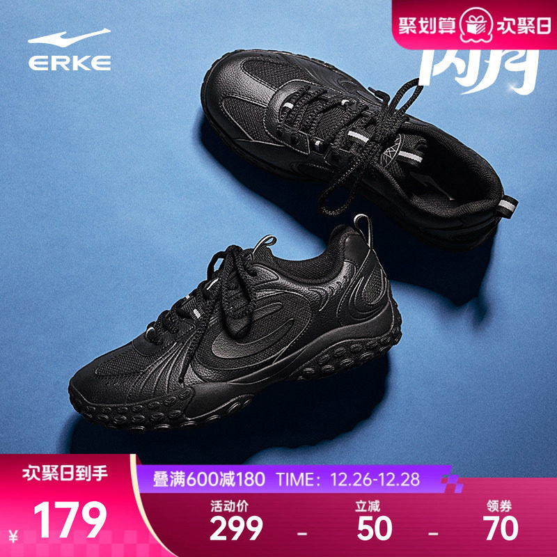 鸿星尔克男鞋秋冬季运动鞋男士跑步鞋新款厚底增高黑色老爹鞋子男