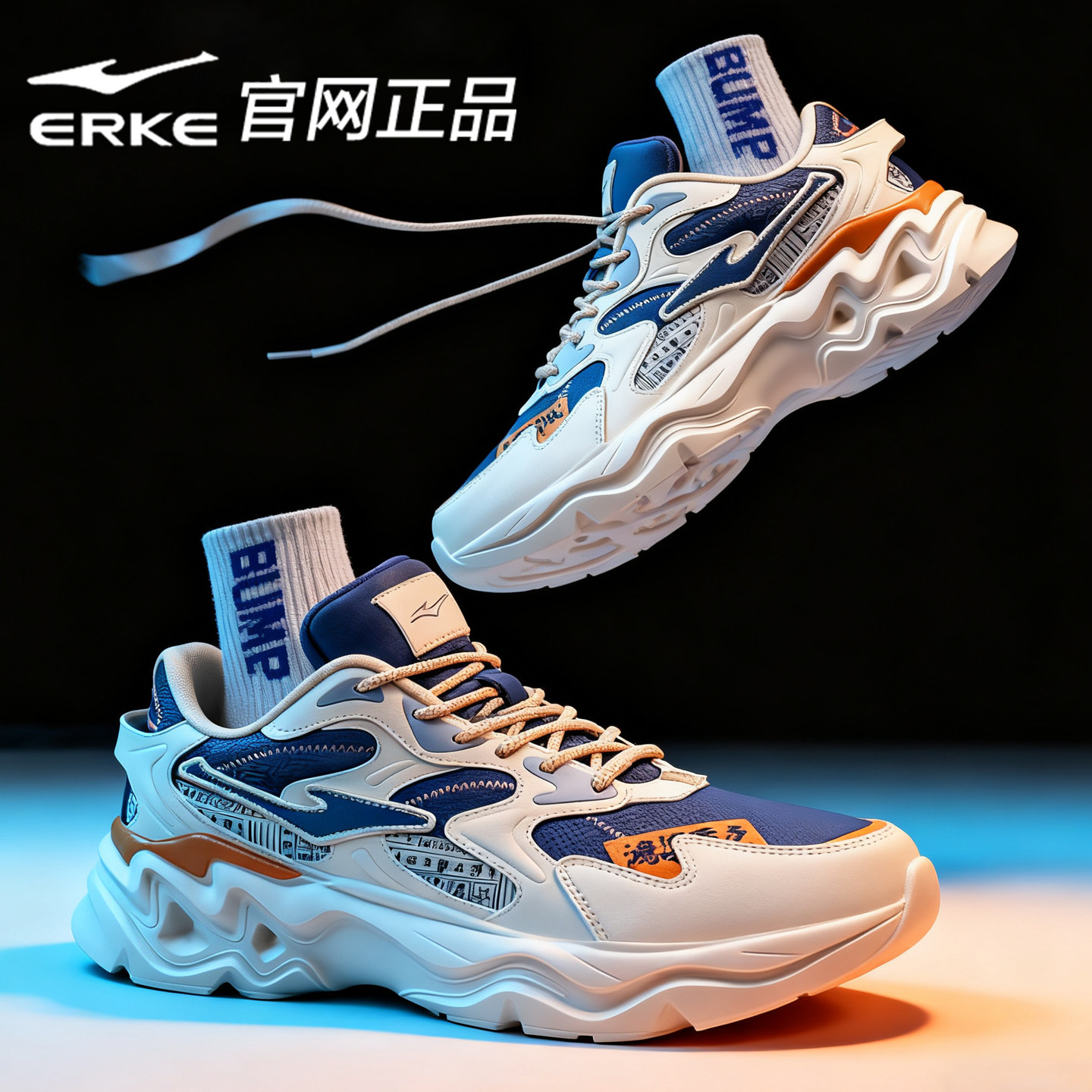 鸿星尔克狂澜3男鞋休闲鞋秋冬厚底老爹鞋网面透气运动鞋跑鞋情侣