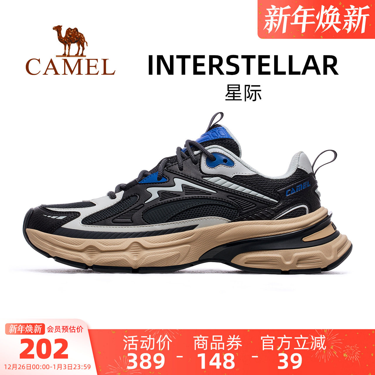 骆驼星际运动鞋男2025秋冬新款男鞋增高鞋子休闲鞋厚底老爹鞋男女