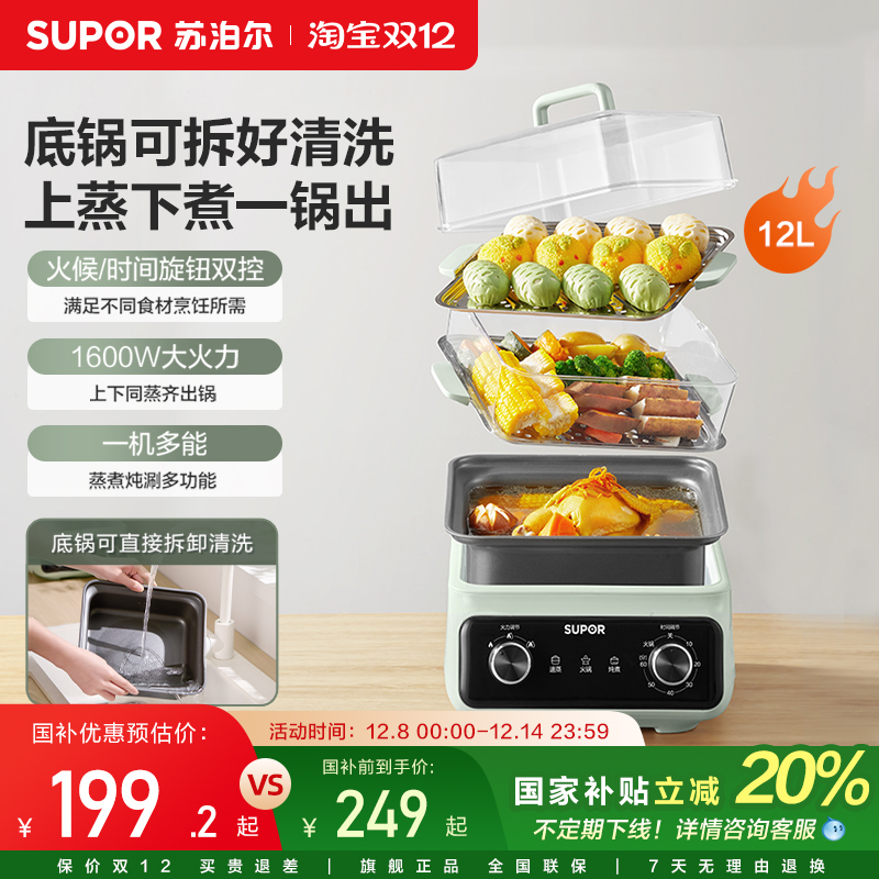 苏泊尔电蒸锅家用三层蒸煮炖一体小型电蒸箱蒸笼多功能早餐机正品