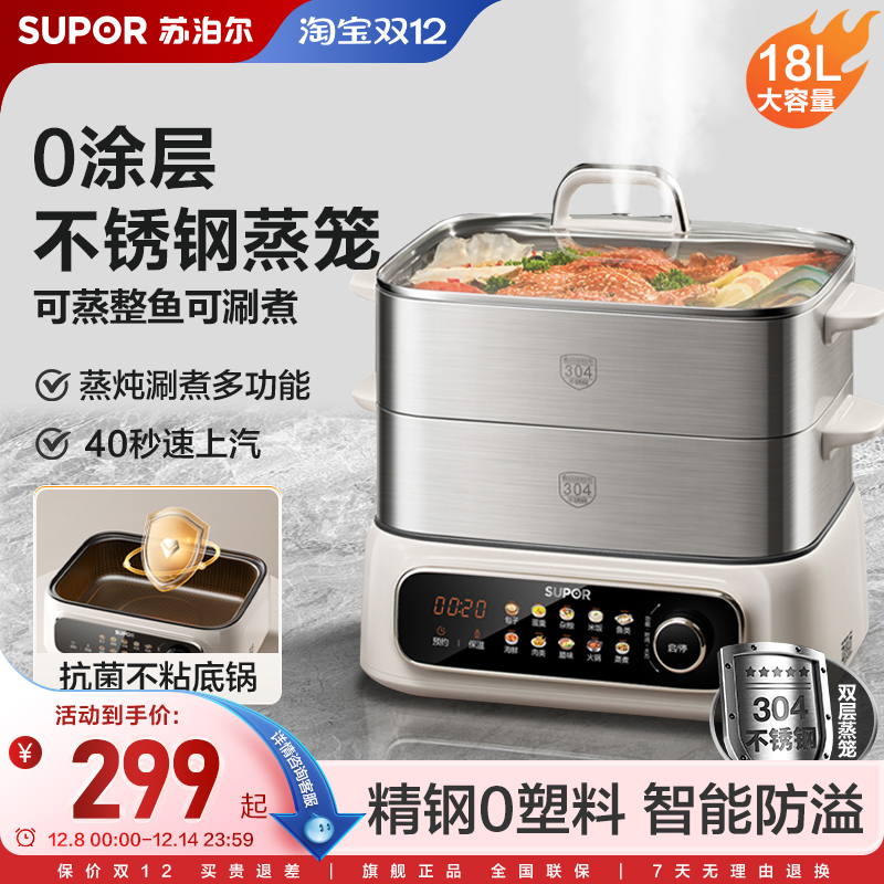 苏泊尔电蒸锅多功能一体蒸锅火锅煮锅家用不锈钢蒸汽锅蒸菜电蒸笼