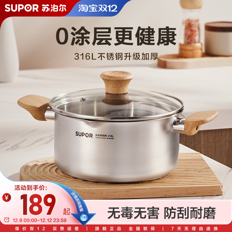 苏泊尔汤锅316L不锈钢加厚家用蒸锅煮粥锅煮锅蒸煮双耳电磁炉炖锅