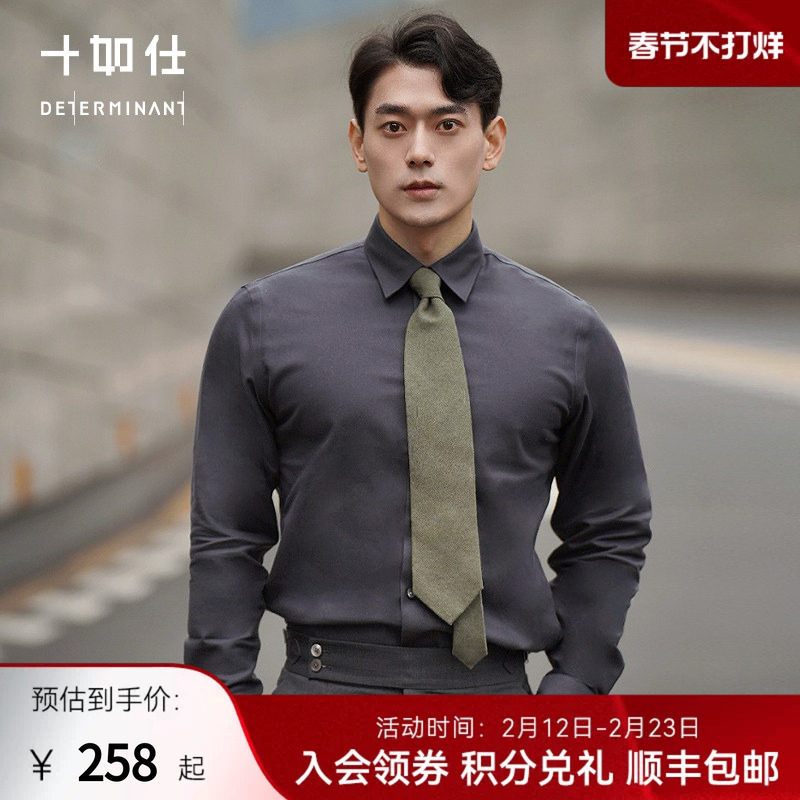 十如仕男士衬衫衣商务法兰绒免烫丝光休闲纯棉易打理长袖衬衫SS02