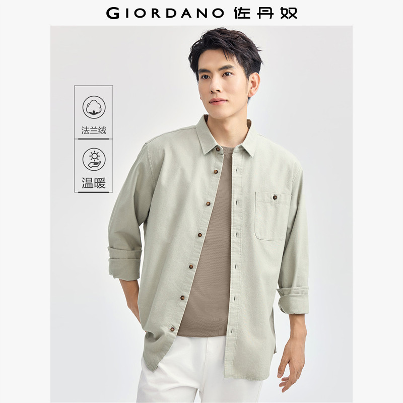 佐丹奴2026年春新款纯棉法兰绒单口袋长袖休闲衬衫外套男01044876