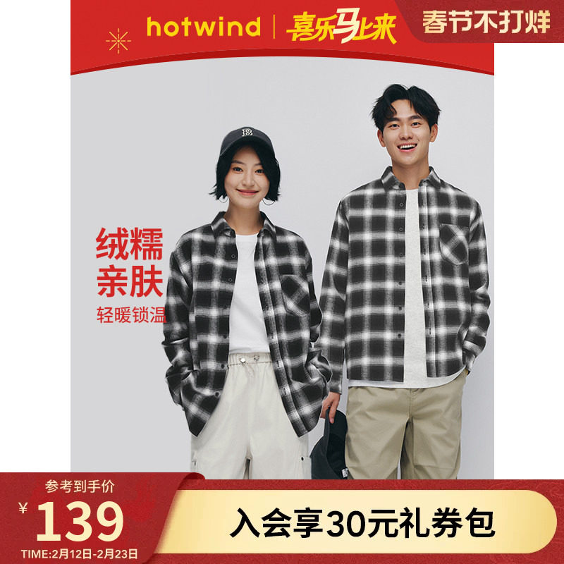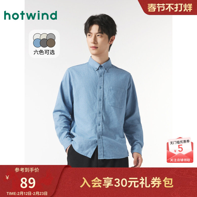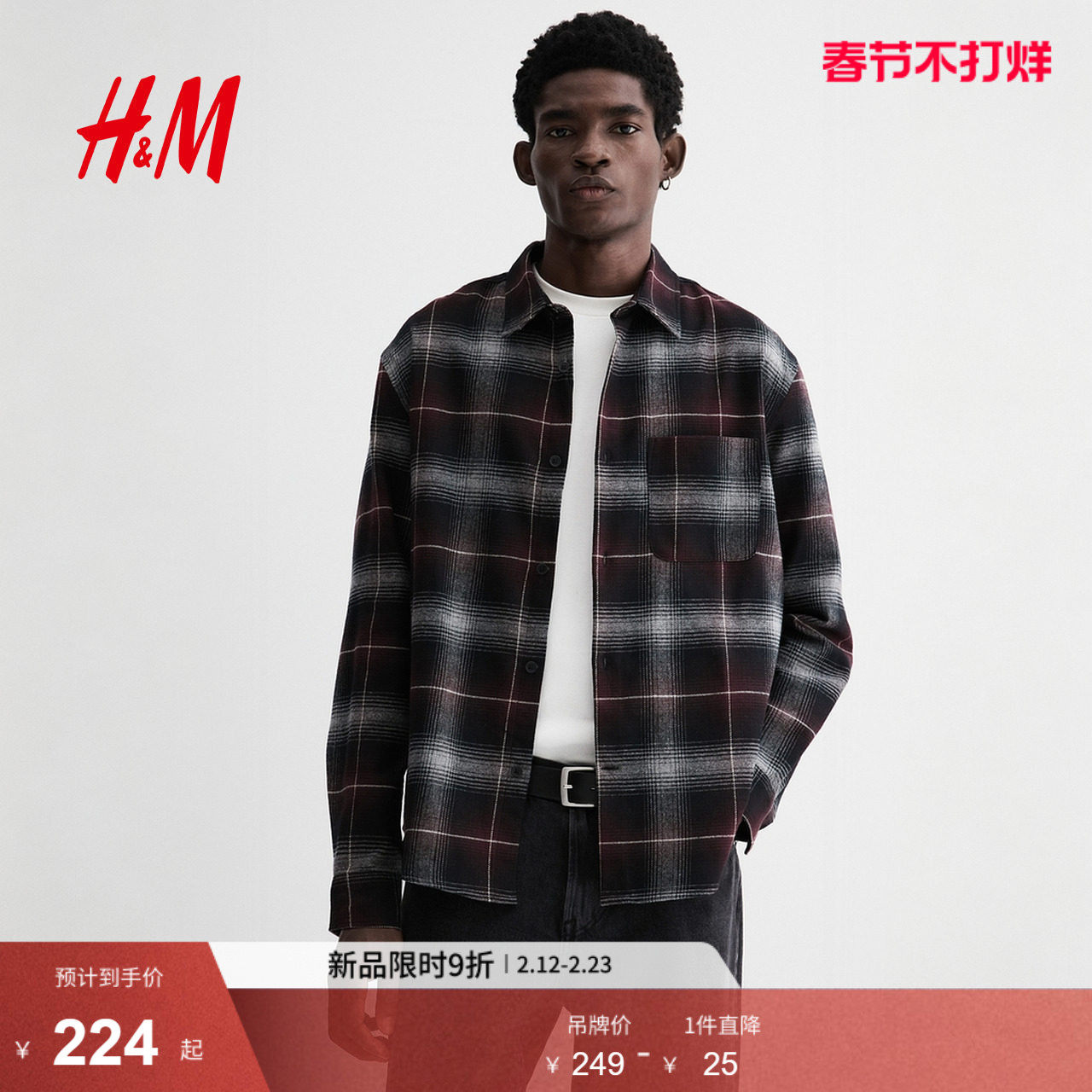 热风2025年春季新款男士衬衫复古个性有型法兰绒直筒衬衫翻领长袖