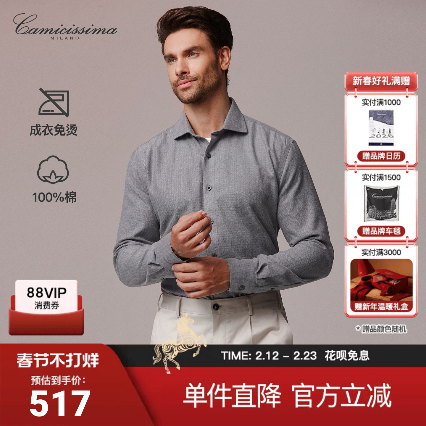 【亲肤保暖法兰绒】CULTUM帝国领针孔领人字纹纯棉衬衫男长袖衬衣