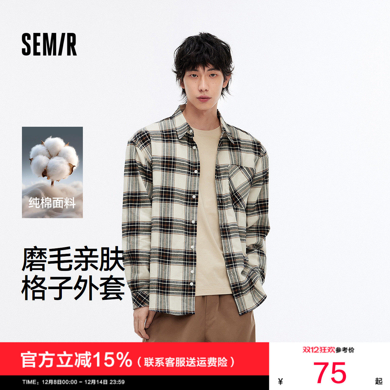 [商场同款]森马长袖衬衫男纯棉法兰绒格子外套2025秋新款经典百搭