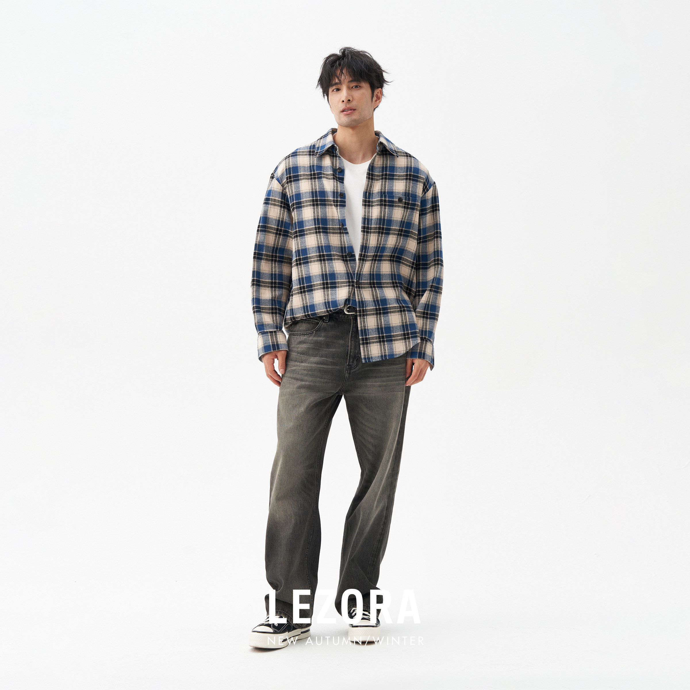 【KEBUSI】定制精纺法兰绒复古磨毛格子长袖boxy衬衫男女#CS008