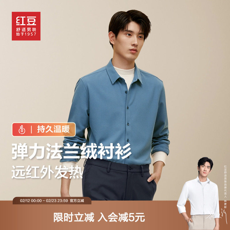 热风2025年秋季新款男士法兰绒直筒衬衫休闲纯色翻领长袖上衣男装