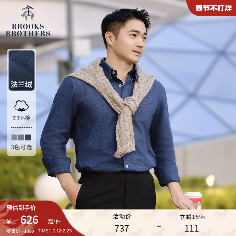 [100%棉]Brooks Brothers/布克兄弟男25秋冬款法兰绒休闲长袖衬衫