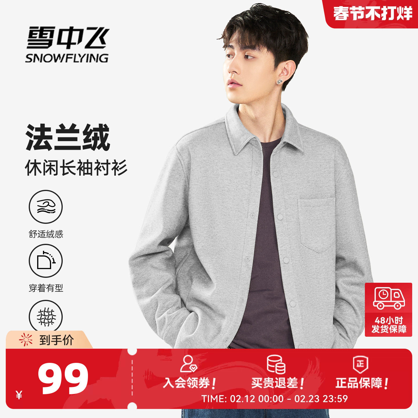 雪中飞法兰绒长袖衬衫男春季新款外搭上衣男士宽松休闲外套潮PCD