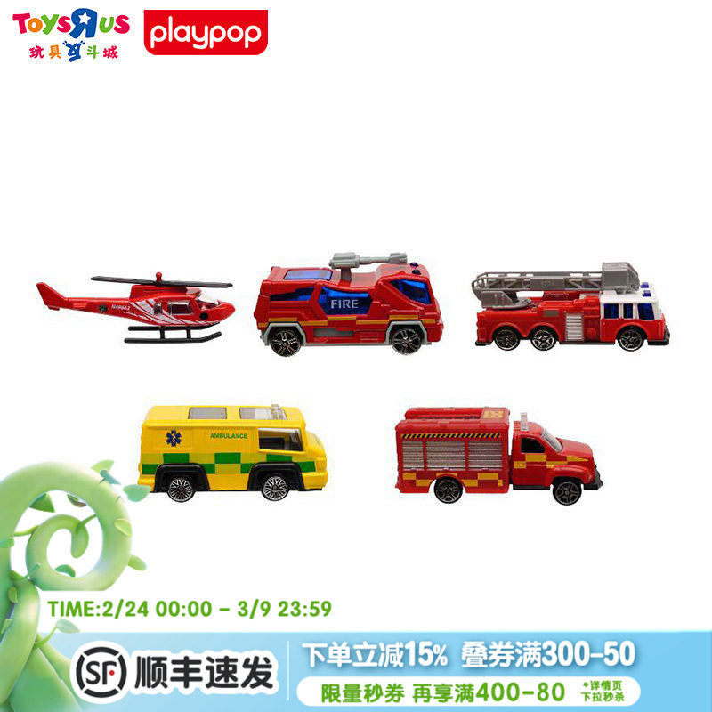 Playpop5件装城市系列建筑工程警车消防救援车玩具小车模型