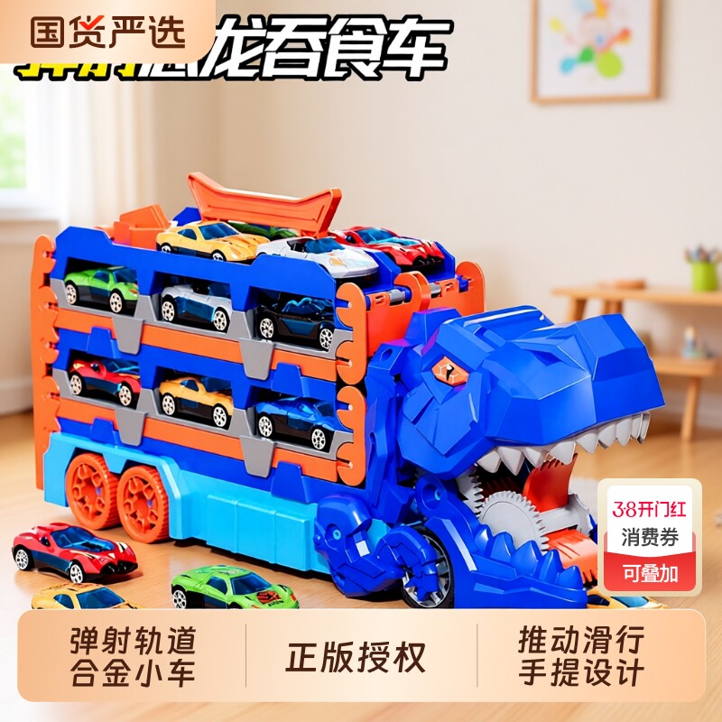 儿童霸王龙恐龙轨道玩具车3-6岁小汽车男孩变形弹射合金5小车早教