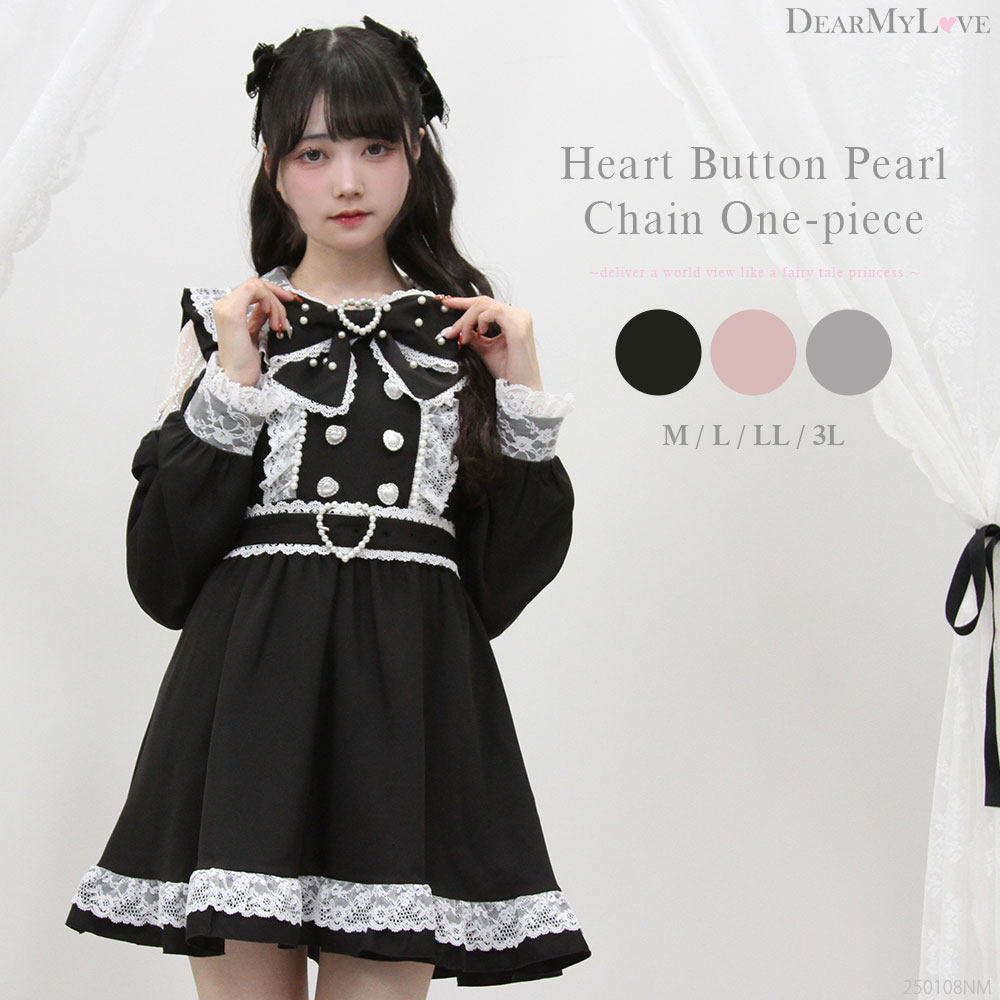 梦展望 珍珠链蕾丝公主lolita洛丽塔日系甜美长袖连衣裙 535157