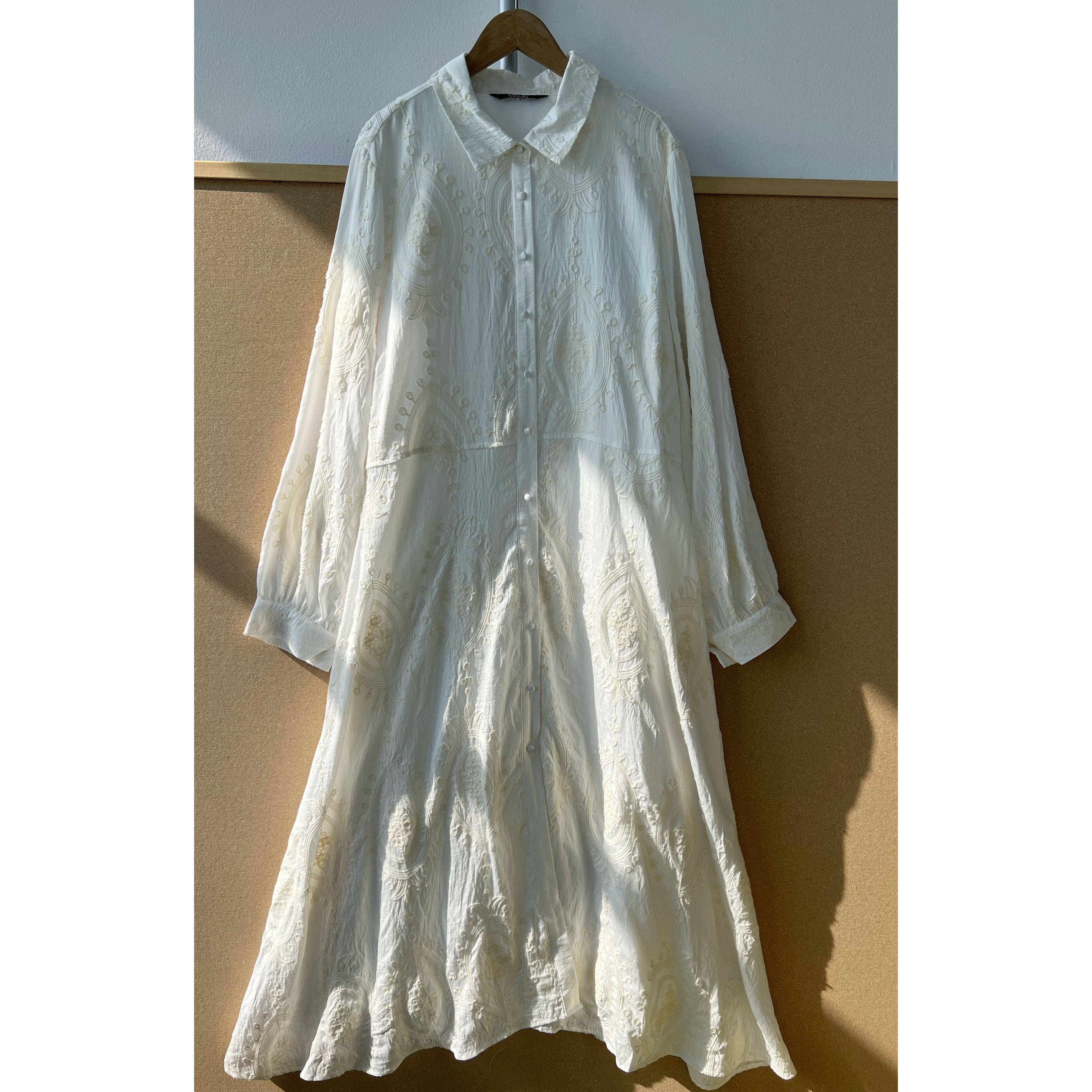 南5-30高货!!蕾丝刺绣长袖衬衫连衣裙春秋韩系温柔甜美长裙H26-1