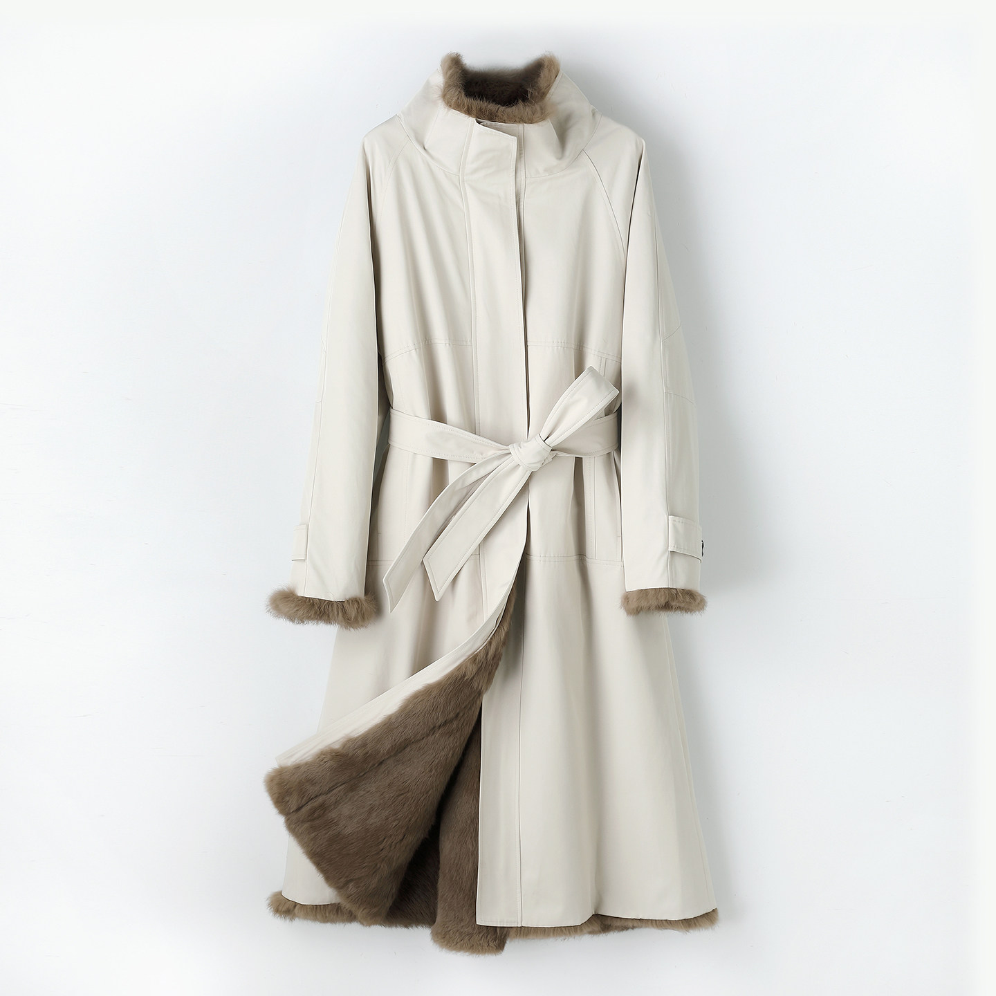 反季皮毛一体海宁皮衣加厚皮大衣女拼接款大翻领时尚修身皮草外套
