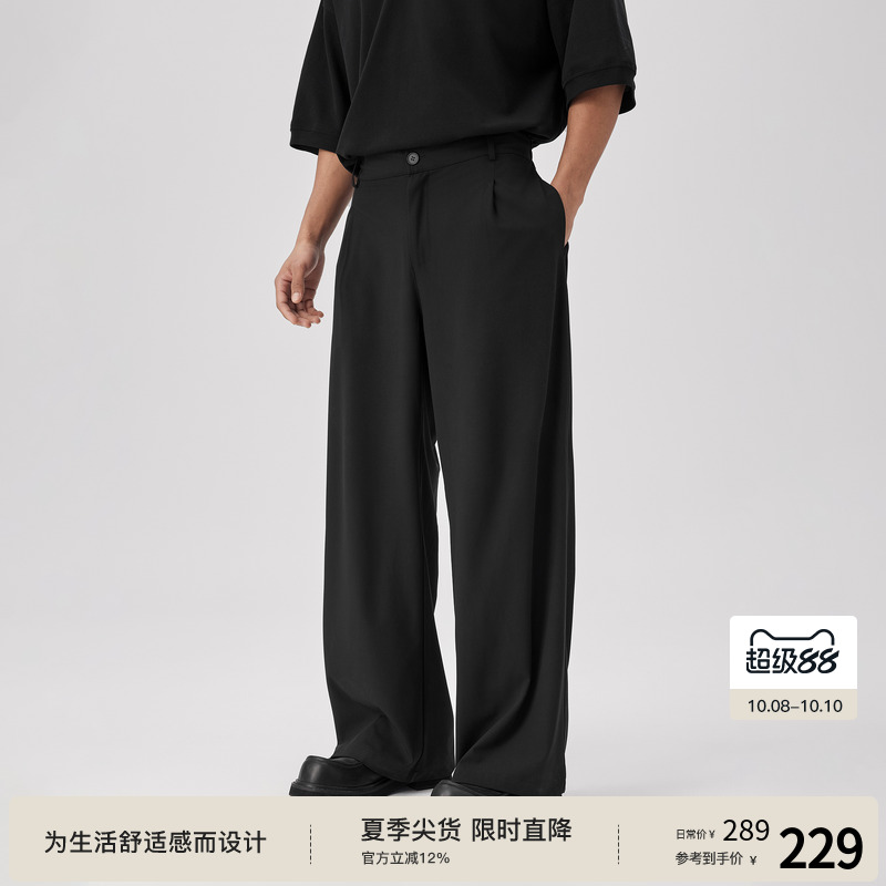 秋季黑色阔腿休闲西裤男宽松直筒垂坠高级感灰色高腰痞帅cleanfit