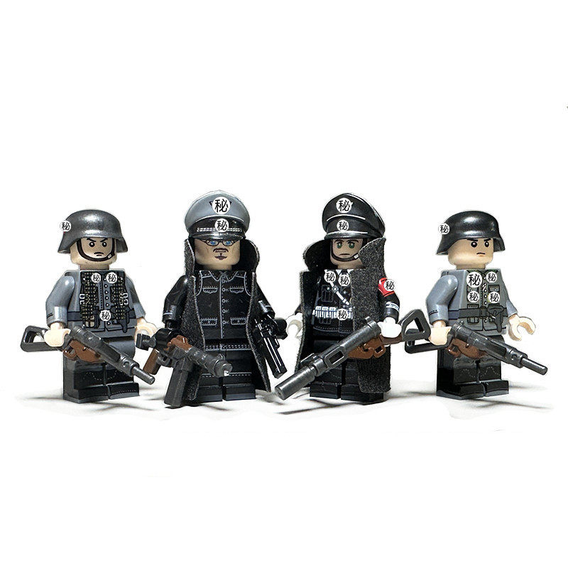 二次大战德军冬季雪地迷彩部队积木人仔第三方德国士兵拼装积木人