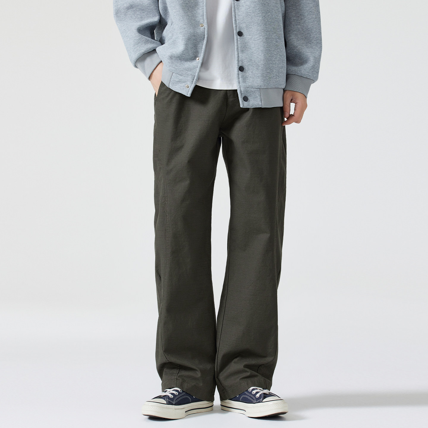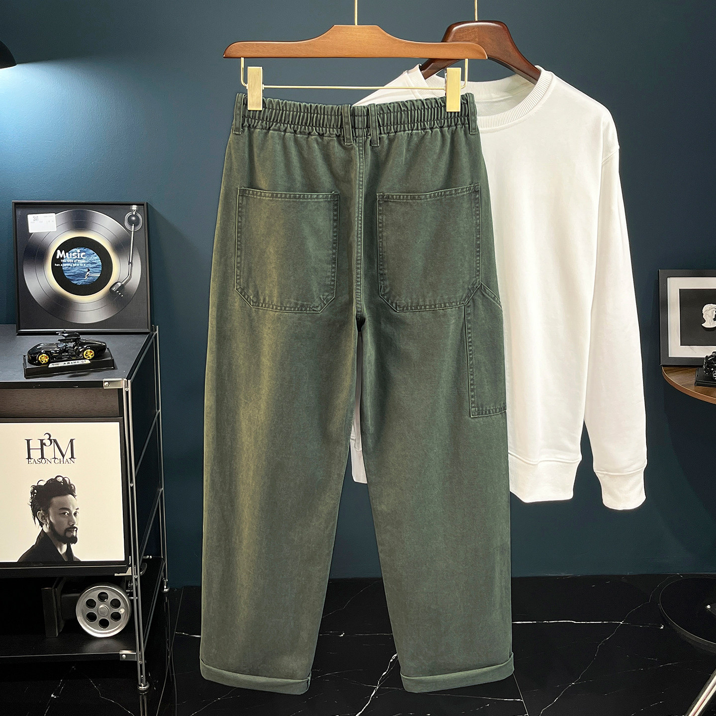 军绿色褶皱伞兵工装裤男秋季美式伐木弯刀裤子cleanfit微喇直筒裤