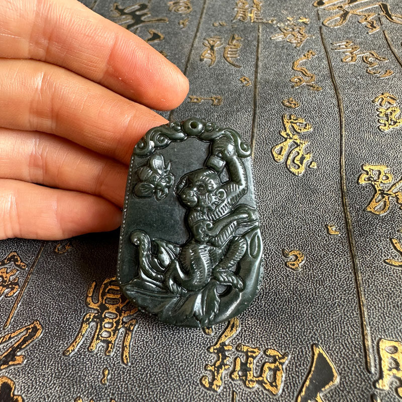 天然和田玉挂件生肖猴吊坠本命年男女美猴王玉佩项链钥匙扣送证书