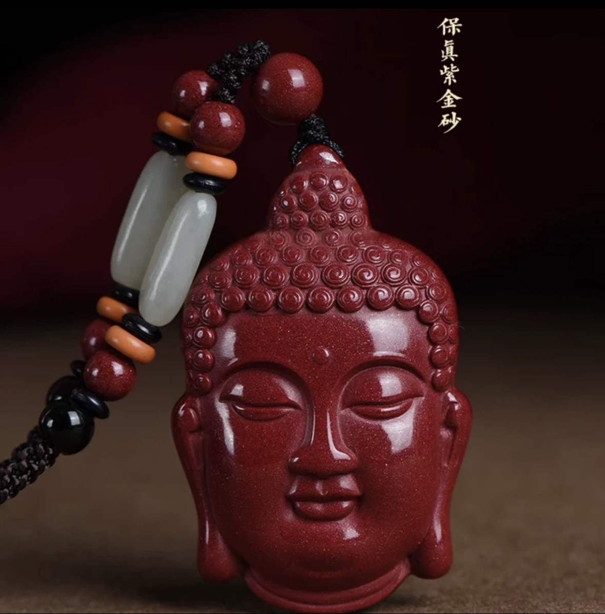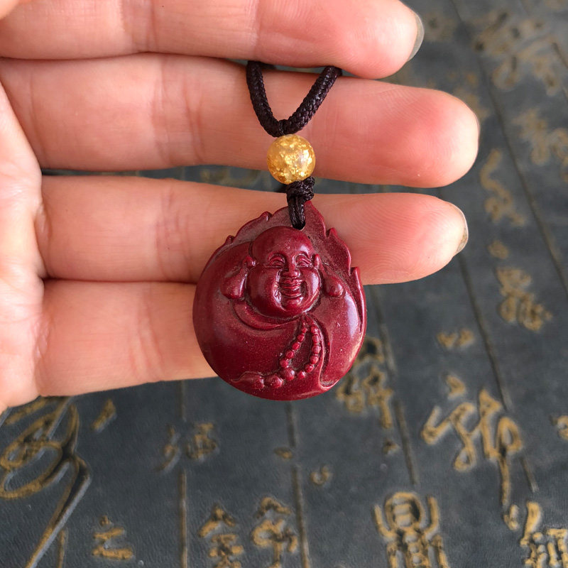 1号店拍卖天然朱砂紫金砂佛头吊坠本命年男女款弥勒笑佛挂件项链