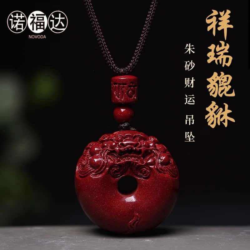天然原矿朱砂貔貅平安扣吊坠本命年男转运珠女款项链挂件饰品礼物