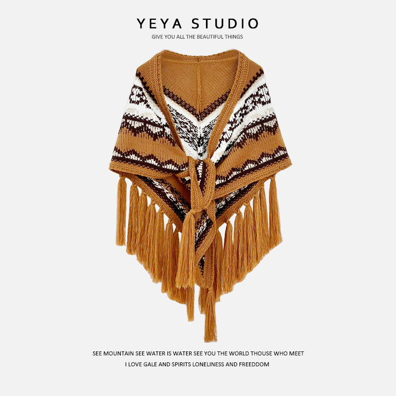 复古民族风流苏大披肩针织女百搭春秋新款三角毛线采风旅游云南潮