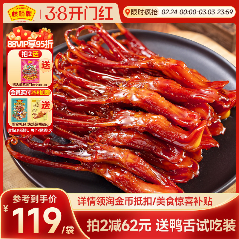 藤桥牌精品大鸭舌温州特产小吃卤味休闲零食即食净重鸭舌头408g