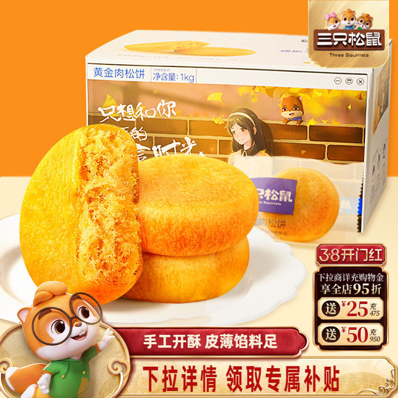 三只松鼠_黄金肉松饼营养早餐特产小吃零食传统中式糕点心送礼盒