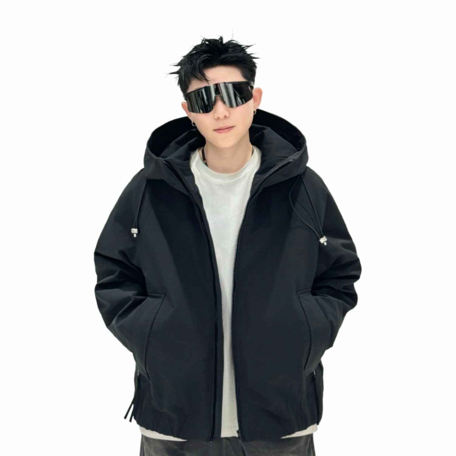 2025秋冬加厚宽松连帽夹克男潮流夹棉外套闲工装运动户外保暖棉服