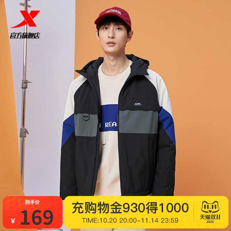 特步保暖棉服男装2025春季新款加厚连帽外套运动上衣977429170296